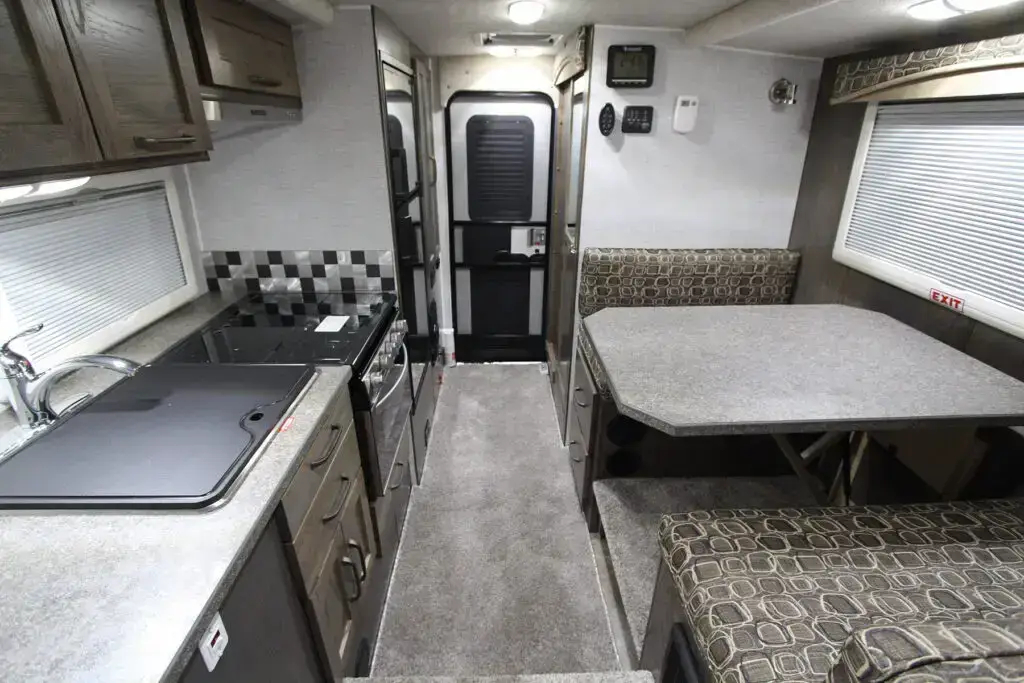 Every Northern Lite is built with comfort in mind. Our interiors feature durable hardwood cabinetry, plush seating area cushions, ample headroom throughout, top end appliances, and a full-sized queen bed in the above cab sleeping area. When Mother Nature forces you to stay inside of your Northern Lite camper, you won’t mind one bit!