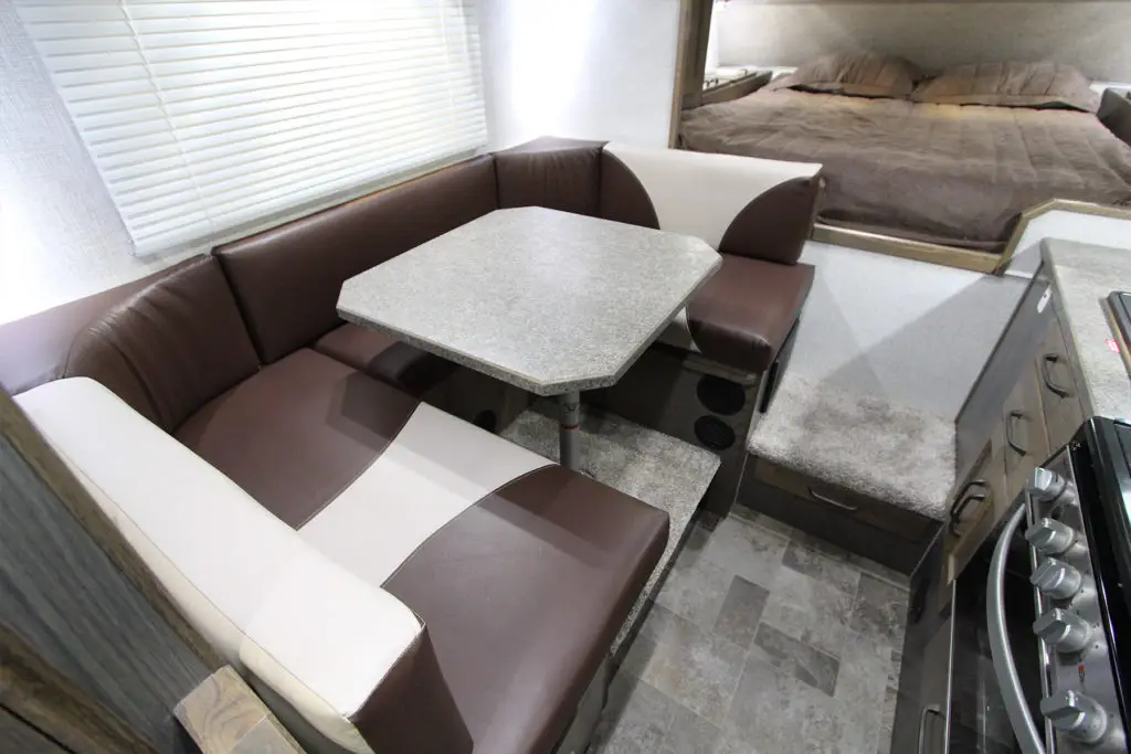 Every Northern Lite is built with comfort in mind. Our interiors feature durable hardwood cabinetry, plush seating area cushions, ample headroom throughout, top end appliances, and a full-sized queen bed in the above cab sleeping area. When Mother Nature forces you to stay inside of your Northern Lite camper, you won’t mind one bit!